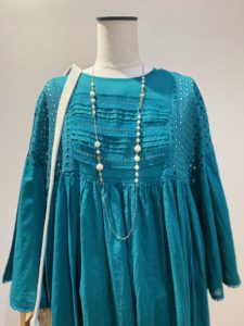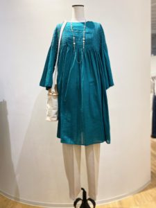 チュニックブラウス4,900円(税込5,390円)、センタープレスパンツ3,500円(税込3,850円)