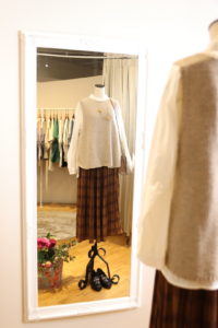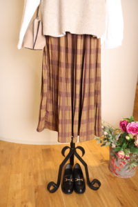 ブラウンカラーのチェックプリーツスカートと合わせて
