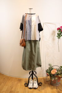 パッチワークなゆるTeeに万能なバルーンスカートを合わせてデイリーコーデ♬